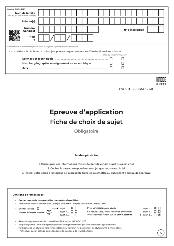 Epreuves d'application - Arts