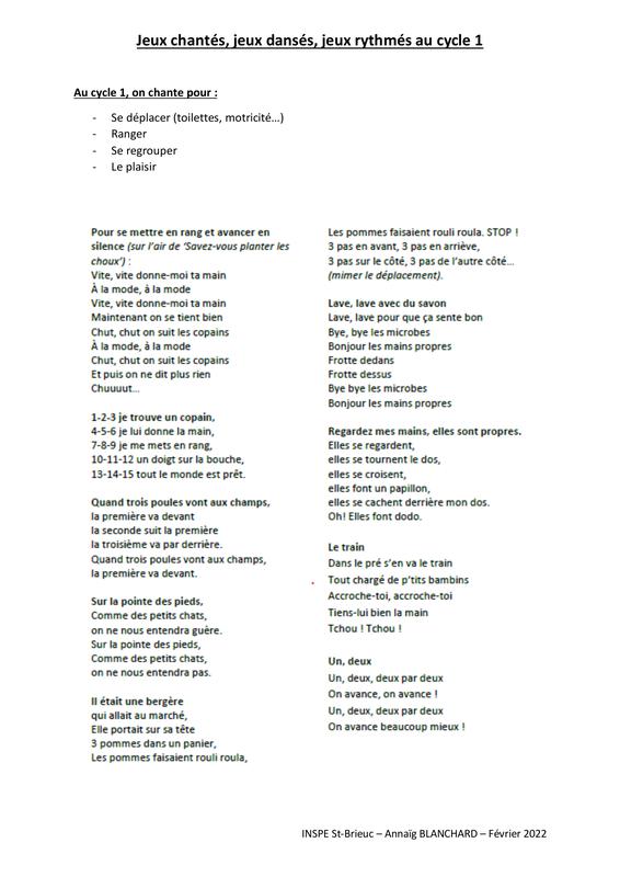 Jeux Chantés, Jeux Dansés, Jeux Rythmés Au Cycle 1 Annaïg Blanchard