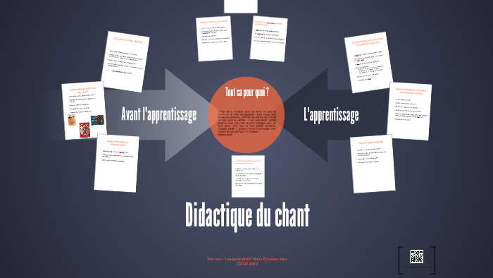 - Pour la partie didactique du chant, nous vous invitons à regarder encore une fois le Prezi  et à accompagner ce visionnage par les deux lectures "Didactique du chant" puis "Quelques réflexions sur l'apprentissage d'un chant" . Au terme de ces lectures, nous vous demandons de compléter le Framapad (document collaboratif) "Autour de la didactique du chant" que vous trouverez plus bas de cette page  ou au bout de ce lien :