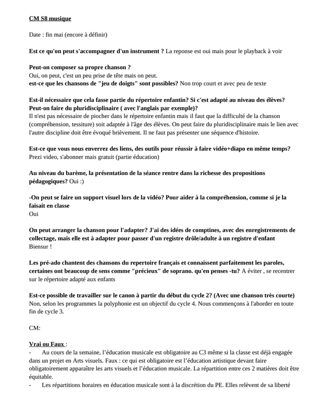 Pour préparer ce CM, je vous propose de lire les Programmes Officiels en musique. et de vous promener dans la rubrique Education Musicale d'Educscol
