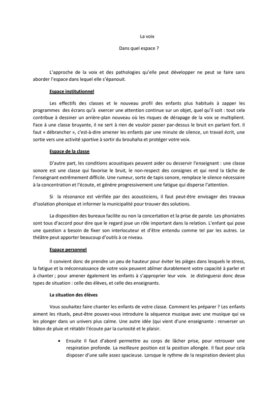 La Voix Ses Troubles Chez Les Enseignants Doc Complet